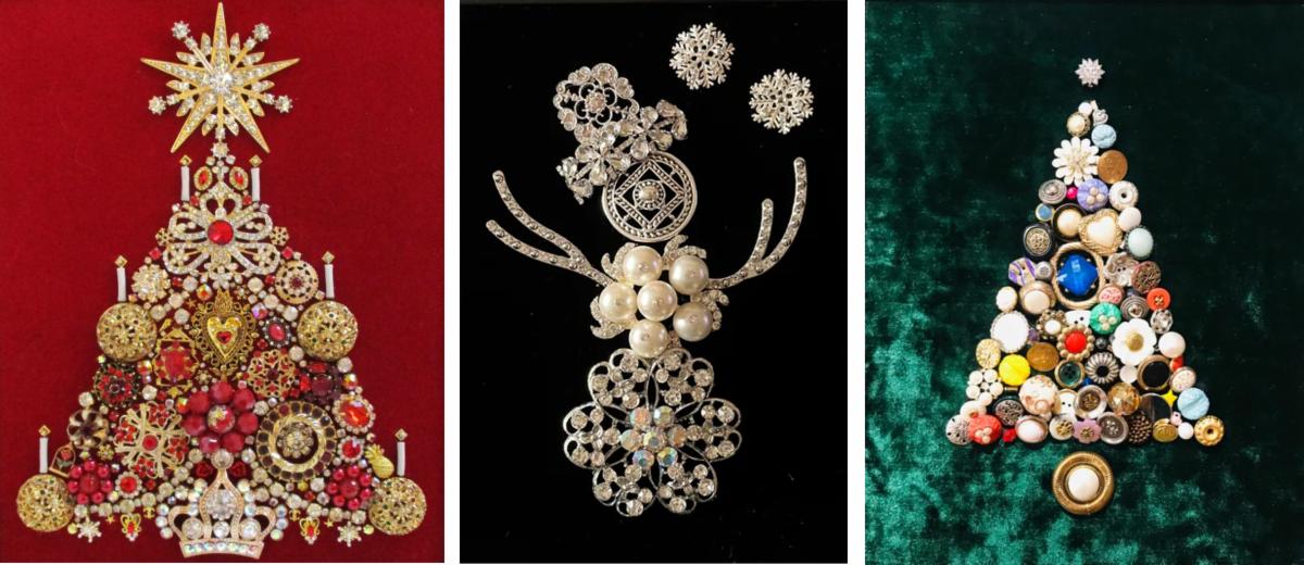Workshop Overview:Participants will enjoy a festive, hands-on workshop using vintage costume jewelry provided by the museum. Participants will dismantle and rearrange sparkling pieces on a suede board to create their own holiday-themed collage. The class will begin with a brief demonstration outlining the project and creative process. Then, participants can trace a shape, such as a Christmas tree, before selecting from a variety of jewelry and beads to design their artwork.